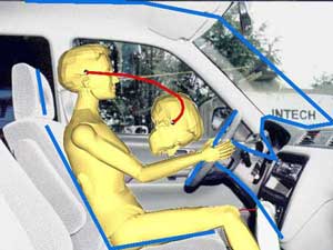 accidente: La cabeza se proyecta contra el parabrizas y/o volante El cuerpo, corre con o sin el asiento, hacia la zona del tablero; Es bueno observar estos detalles; debido a que al diseniar el vehiculo, se fabrican estas partes con materiales de resistencia calculada y, no es recomendable mejorarlos con materiales mas resistentes. Porque estariamos en desventaja ante la contingencia de un accidente [es preferible que se doble el volante, a fracturarnos la cabeza]. |