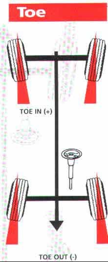 | Tradicionalmente el "TOE" ha sido definido como la diferencia de la distancia o separacion entre la parte anterior y la parte posterior de las ruedas delanteras medida a la altura del eje [Esta definicion es aplicable a las ruedas traseras de igual manera |