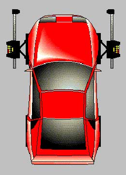 conducción de un vehículo. Las cuatro ruedas paralelas entre sí y a su vez paralelas a la línea central del vehículo, el centro o mitades de los ejes concuerda con el centro del vehículo, el mecanismo de dirección y el volante, perfectamente centrados. Volver al indice del tema. |