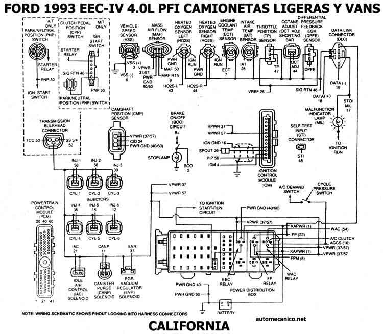 | 1993 - 4.0L -PFI EEC-IV | ESQ. ELECT. CAMIONETAS Y VANS [CALIFORNIA] |