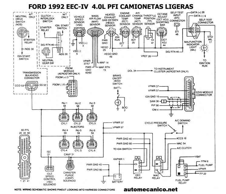 | 1992 - 4.0L -PFI EEC-IV | ESQUEMA ELECTRICO |
