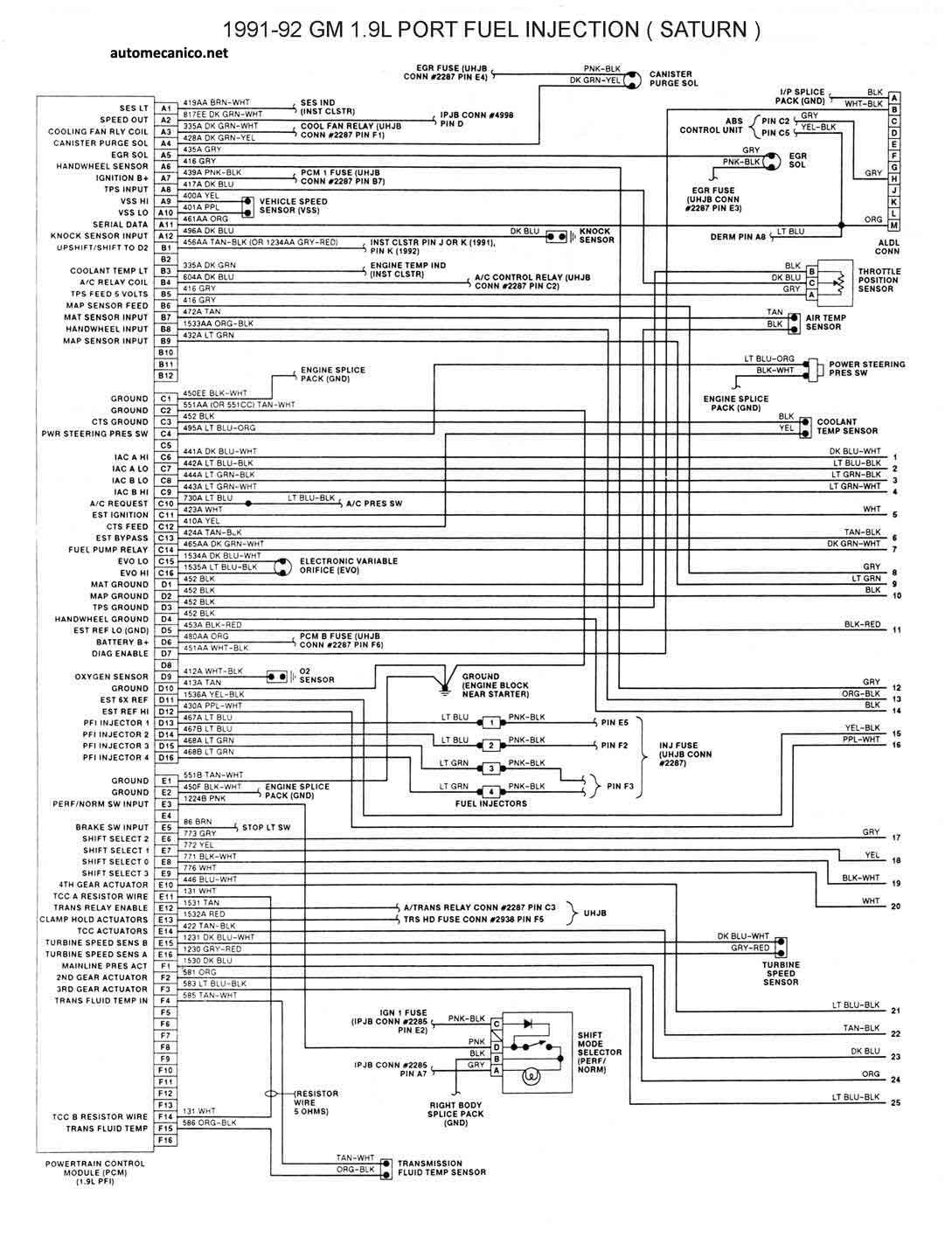 | 1991/92 - 1.9L PFI [SATURN] 1/2 | ESQUEMA ELECTRICO |