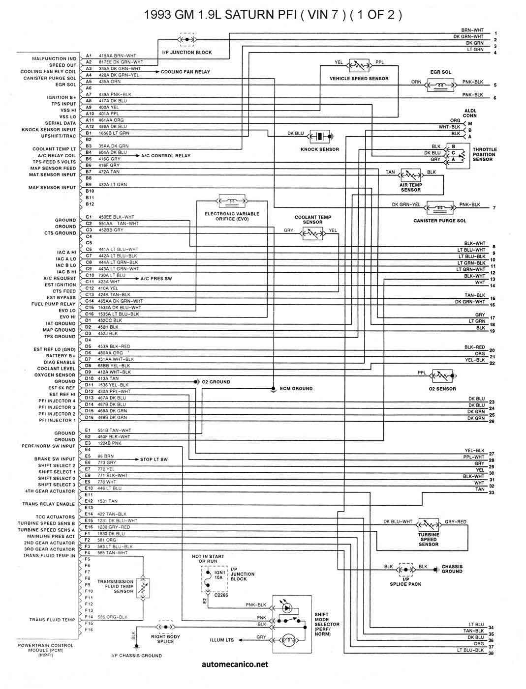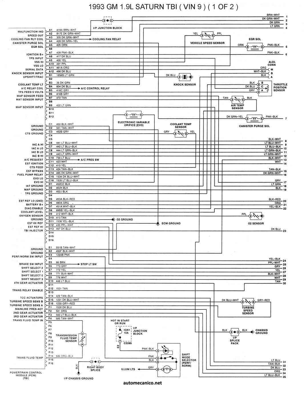 | 1993 - 1.9L TBI [SATURN] 1/2 | ESQUEMA ELECTRICO |