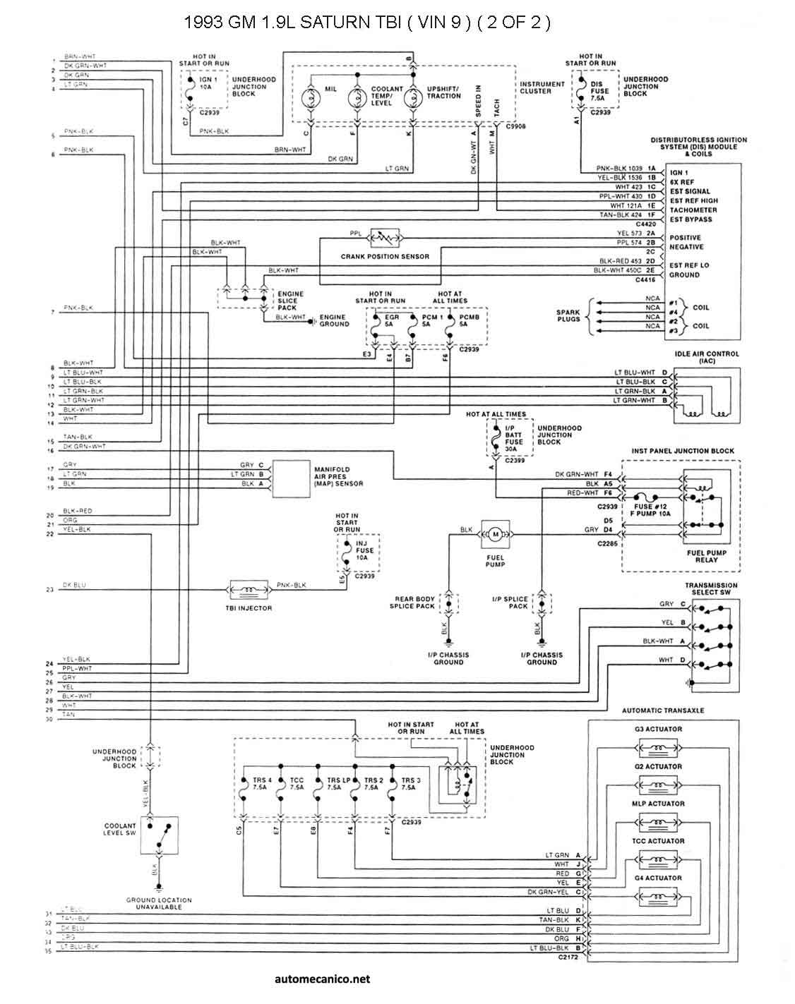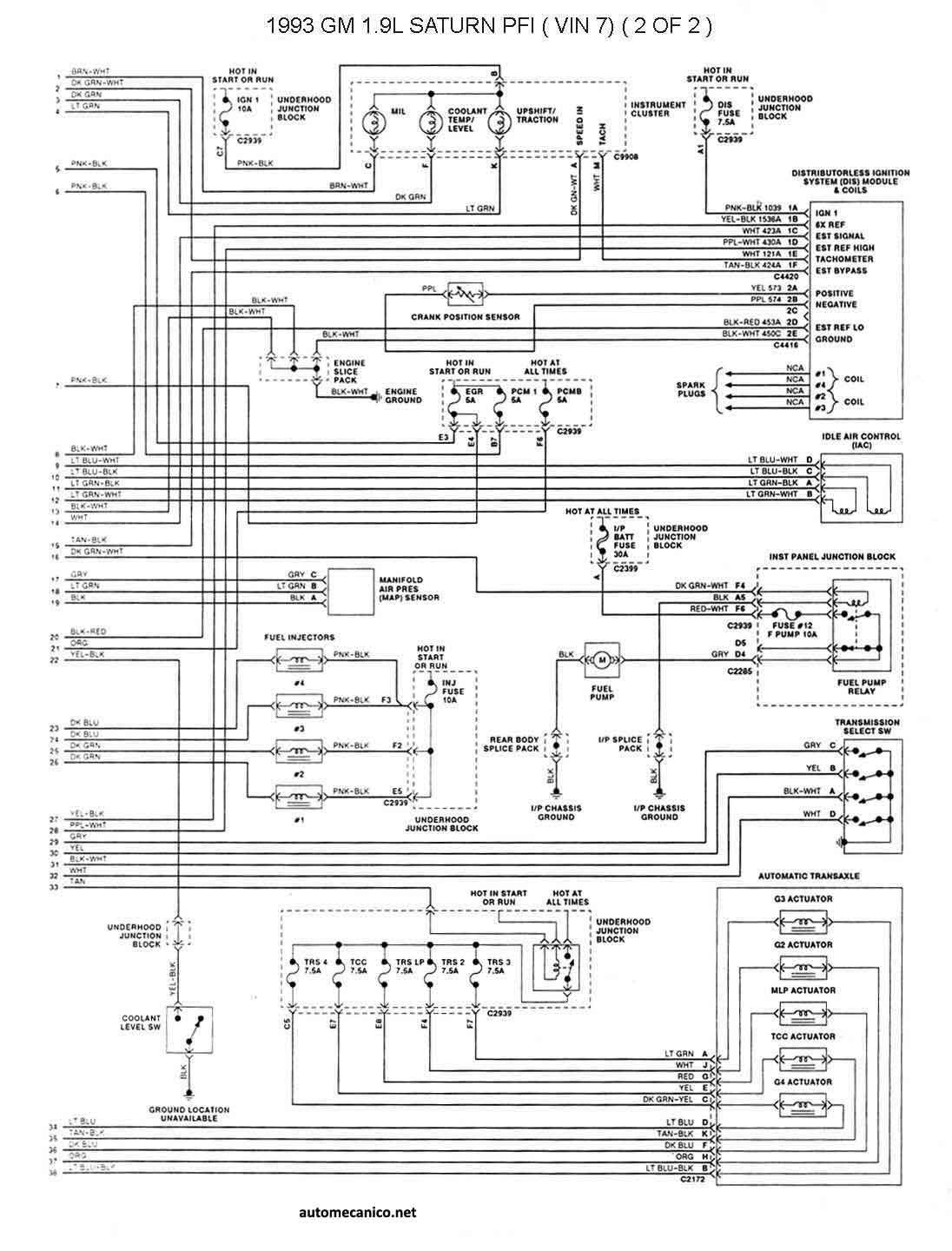| 1993 - 1.9L TBI [SATURN] 2/2 | ESQUEMA ELECTRICO |
