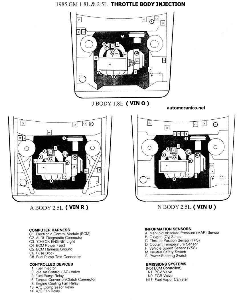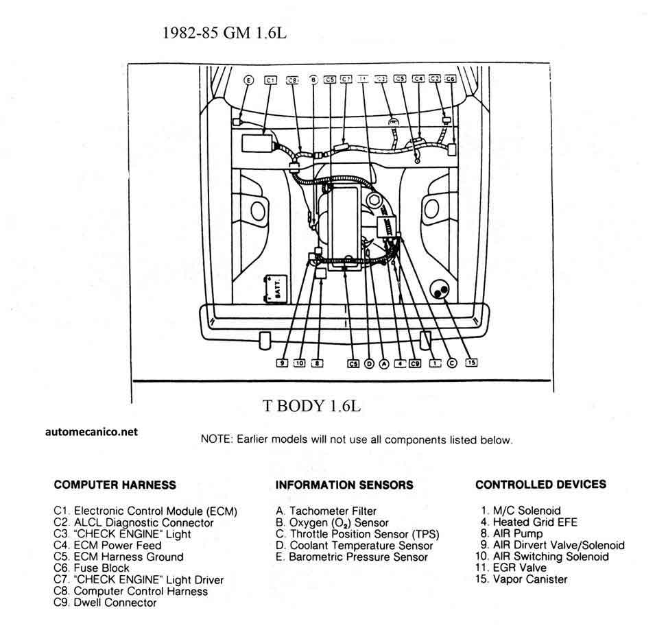 | 1985 - 1.8L 2.5L TBI | CEC UBIC. DE COMPONENTES |
