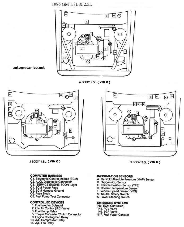 | 1986 - 1.8L TBI | CEC UBIC. DE COMPONENTES |
