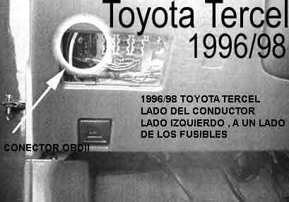 pegar una etiqueta indicando la ubicacion del conector. En la practica observamos, que aun con la indicacion mencionada; en algunos vehiculos resulta dificil encontrar el bendito conector. Por ello en "automecanico,com" hemos recopilado algunos ejemplos de modelos que llevan el conector ubicado en lugar diferente al indicado en el parrafo anterior. Igualmente incluimos un enlace; para ingresar a una base de datos, en el cual encontrara, la informacion especifica para el modelo de su vehiculo, relacionado a la ubicacion del conector y descripcion de codigos OBD II. |